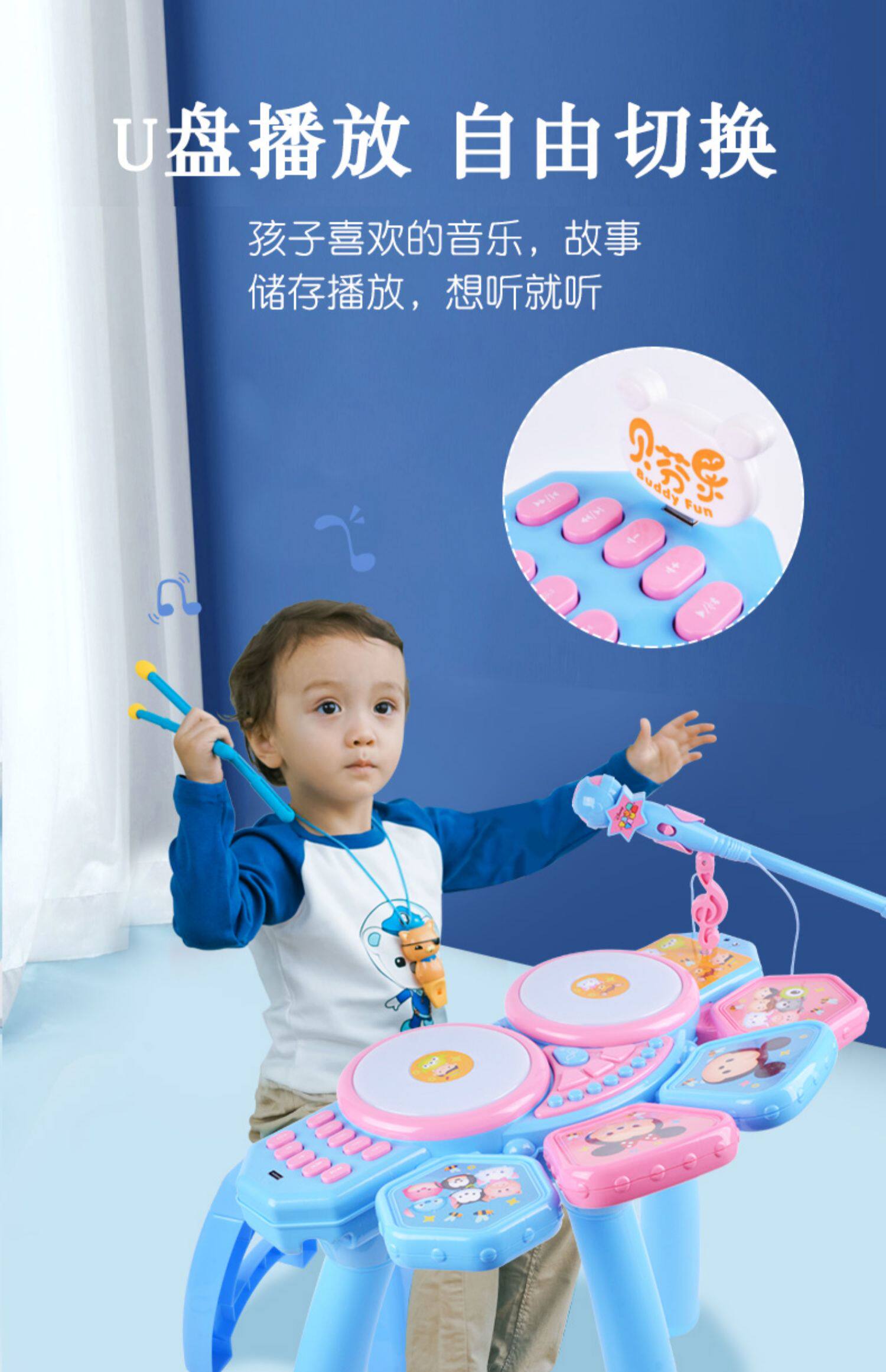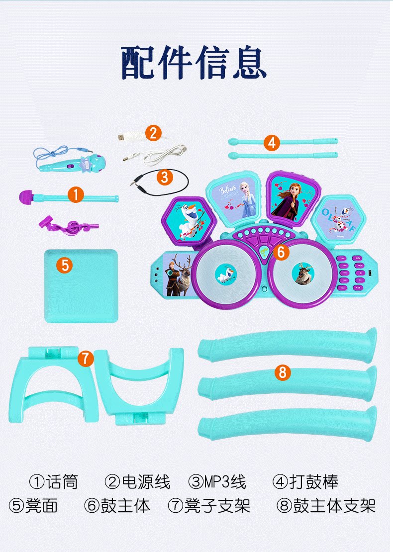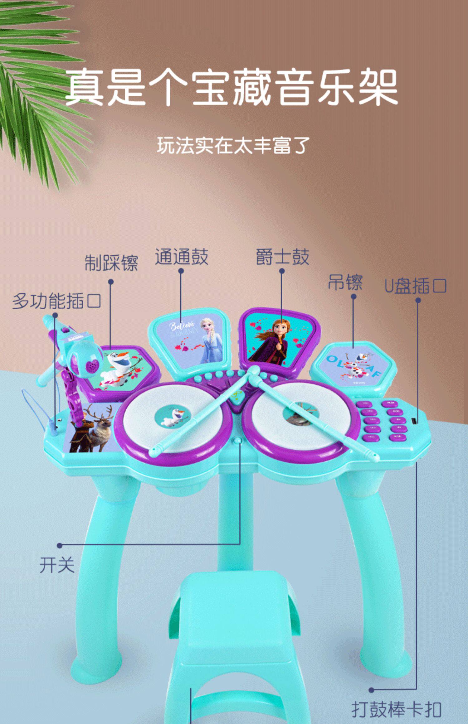 Барабаны для начинающих, музыкальные инструменты, микрофон, игрушка, «Холодное сердце»