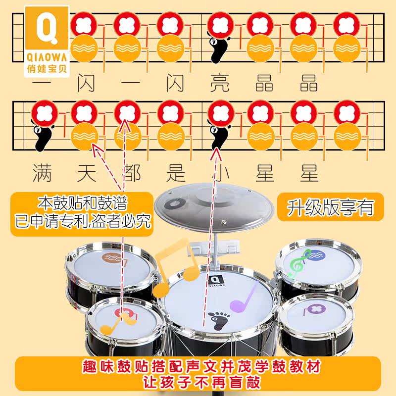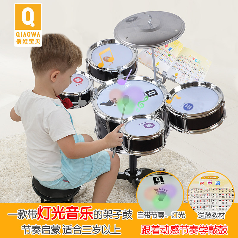 俏娃宝贝 Барабаны для начинающих, музыкальные инструменты, легкая игрушка с подсветкой подходит для мужчин и женщин, 1-3-5 лет