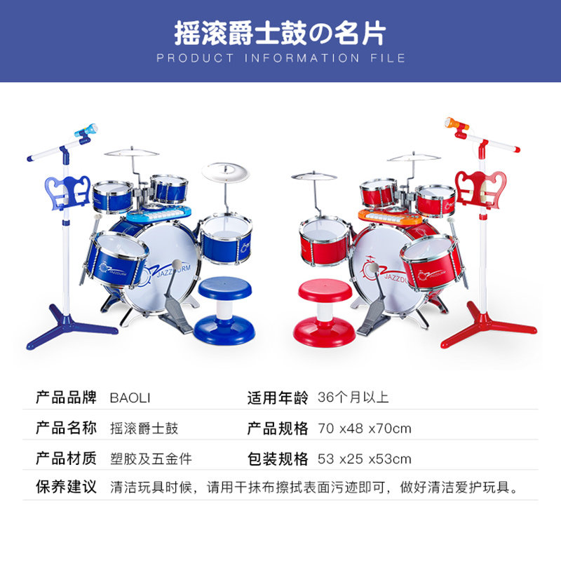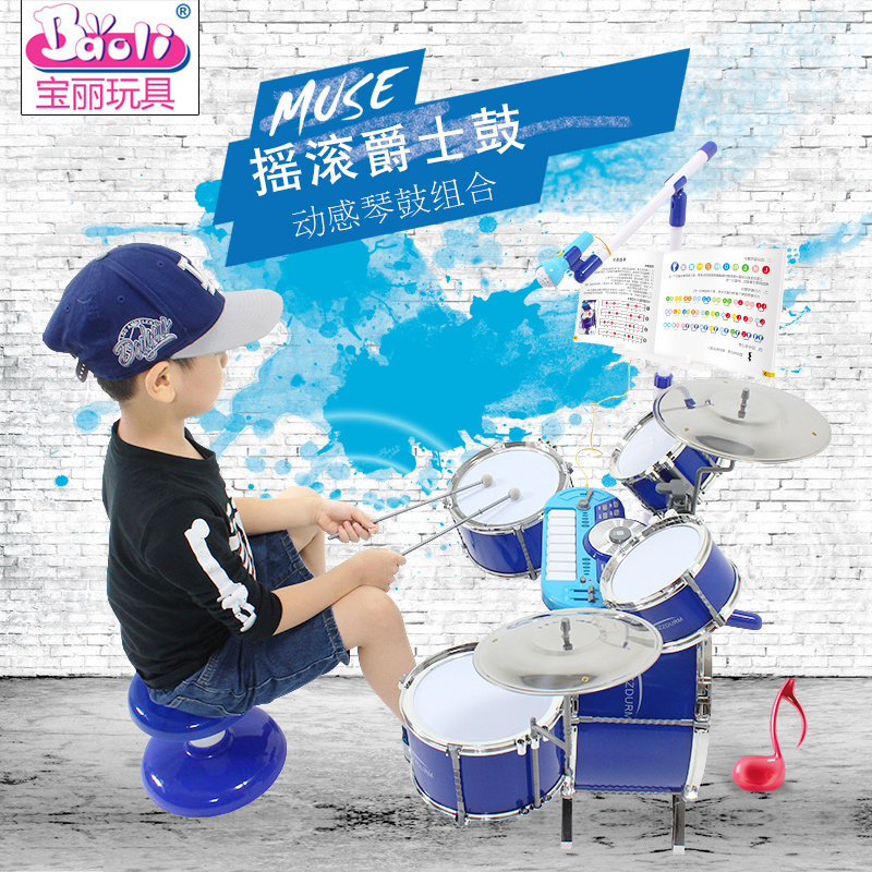 宝丽 Барабаны, музыкальные инструменты, большая электронная игрушка подходит для мужчин и женщин, 3-6 лет, подходит для начинающих