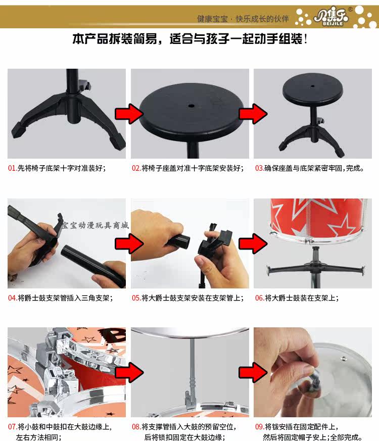 - Красный супер большой 5 -барабанный табурет (отправьте микрофон)