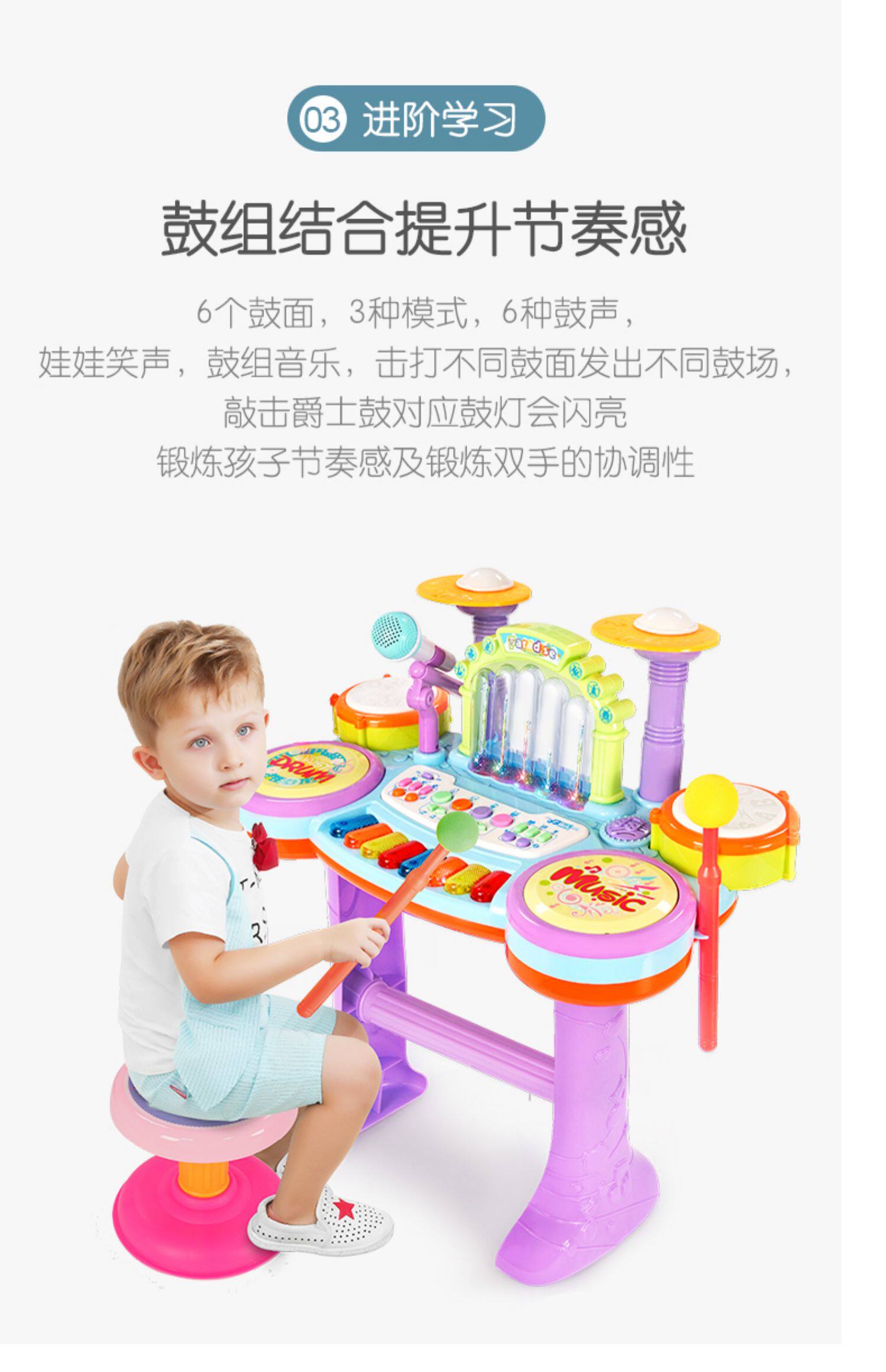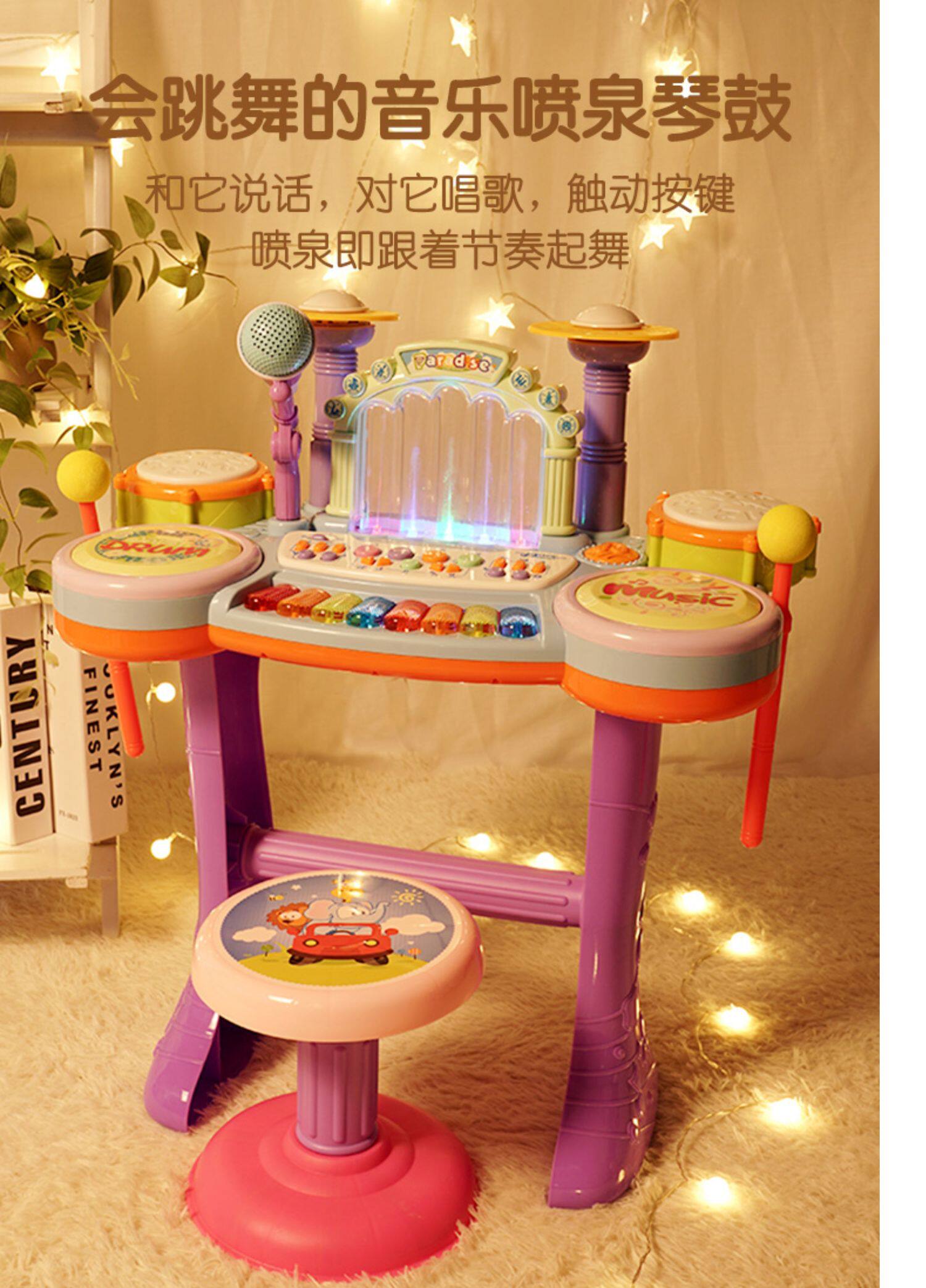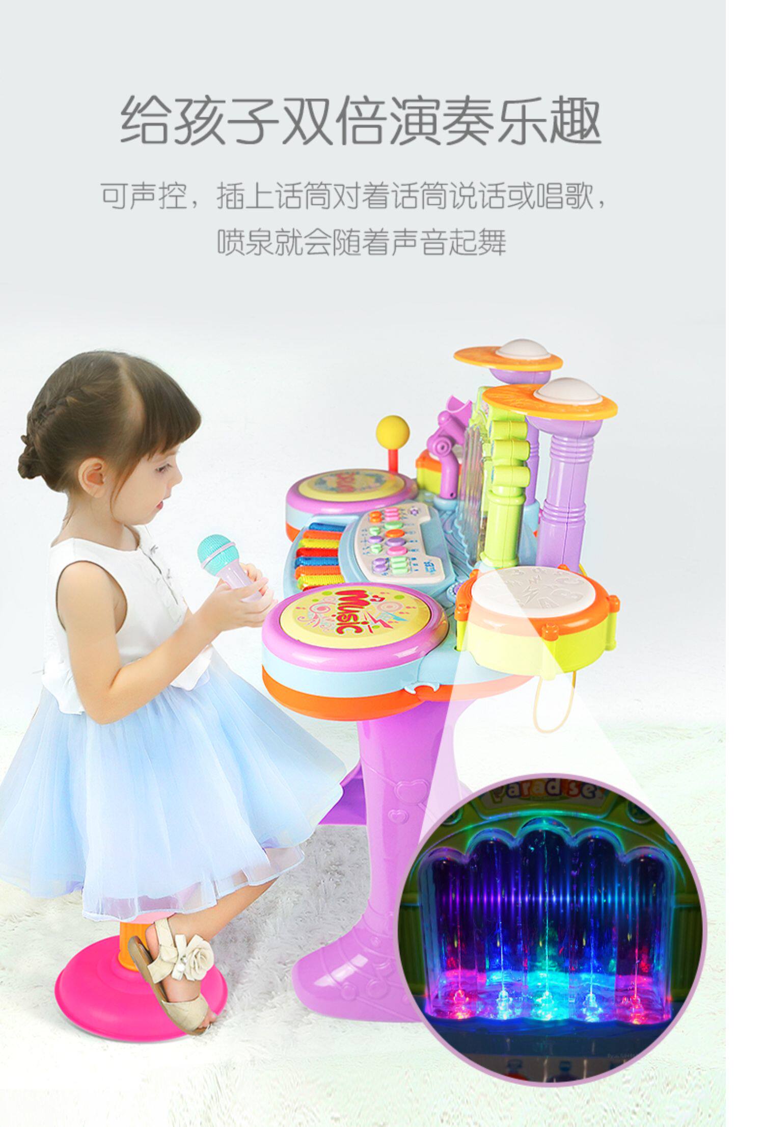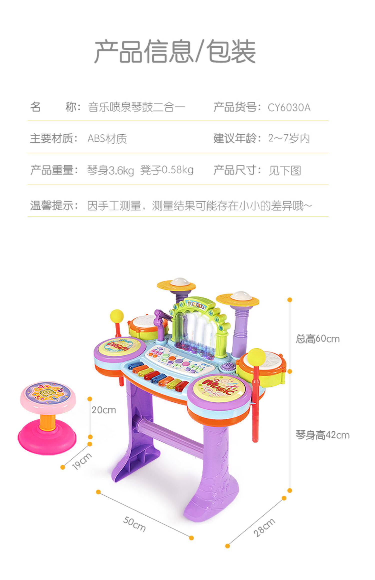 Игрушка, барабаны для начинающих, музыкальный фонтан, музыкальные инструменты, 1-3 лет