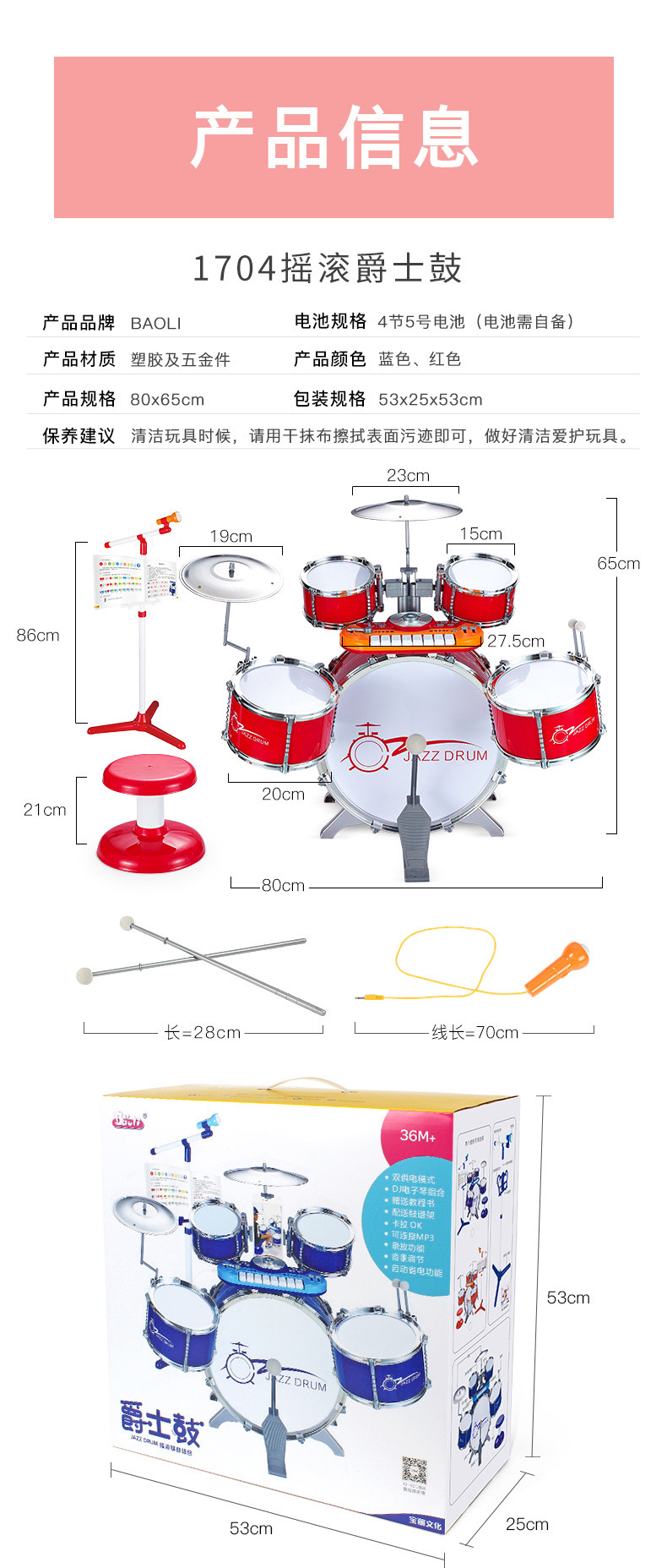 Барабаны для начинающих, музыкальные инструменты для мальчиков, игрушка, 3-6 лет