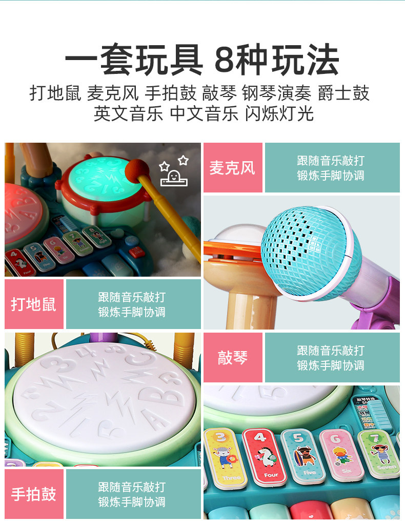 Барабаны для начинающих, универсальные музыкальные инструменты для мальчиков, игрушка, 1-3 лет