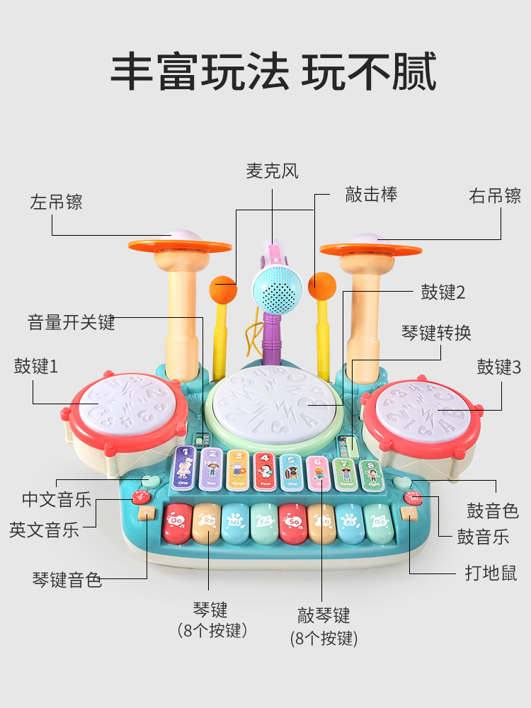 Барабаны для начинающих, музыкальные инструменты, игрушка для мальчиков, 1 лет