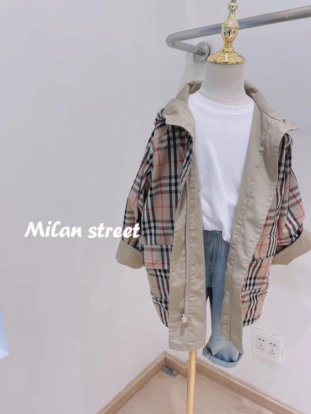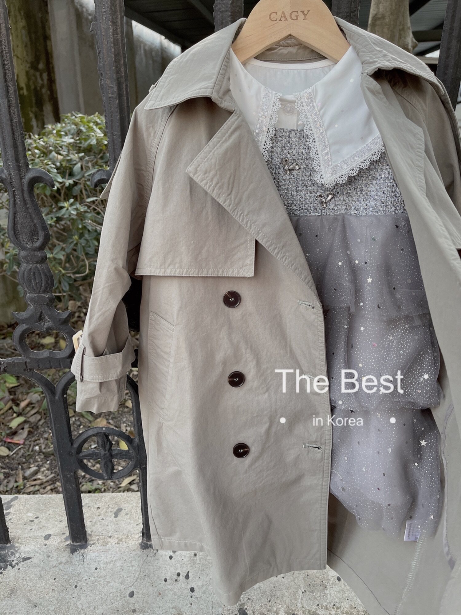 Хлопковый осенний плащ, комплект, длинный корсет, (в наличии на складе), детская одежда, средней длины, большого размера (150160)