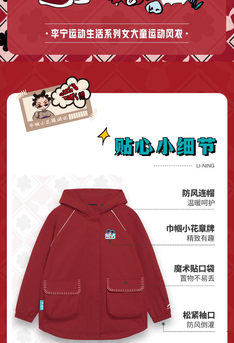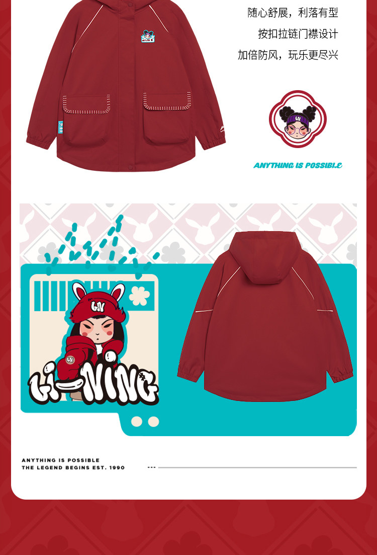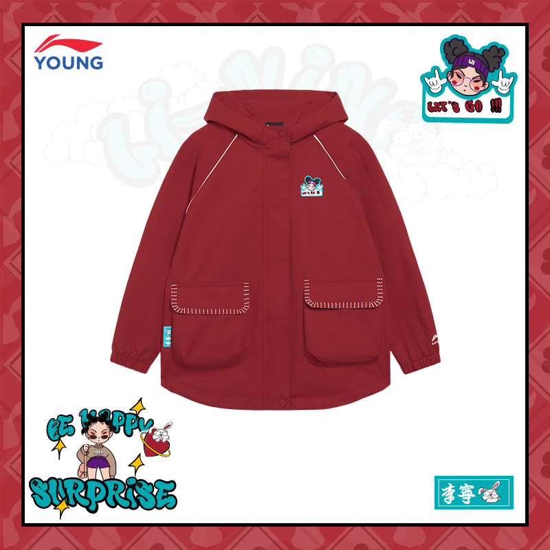 Li Ning, куртка, весенний красный лонгслив, водонепроницаемый плащ, спортивный костюм, детская одежда, подходит для подростков, коллекция 2023, год кролика