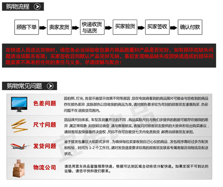 6Вес и объем продукта большие, поэтому многие курьерские компании не получают товары и могут отправлять только обычные грузовые компании, поэтому, когда товары прибывают в местоположение покупателя, мы можем только забрать товары. Высоко, вы не можете освободить доставку.Просить быть оправданным!Примечание: сначала проверьте товар, а затем подпишите его, когда вы подписываете его. Если проблема обнаружена лично, она не будет нести ответственность после подписания!Экспресс по умолчанию (Daily Express)