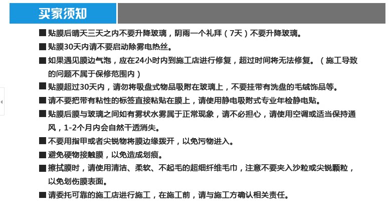 6. Сожмите воду и царапите воду:Распылите воду без липкой стороны на положительной мембране.Держите его в чистоте), а затем сбросить воду между мембраной и стеклом скребком (заказОт середины до обеих сторон.Слегка очистите его небольшой силой, а затем используйте, когда мембрана не перемещена.бритья.Соскабливание воды на положительной мембране - это предотвратить соскабливание положительной мембраны.После того, как вода соскабливается,Вспомогательная пленка завершила свою задачу, просто убейте его и выбросьте).
