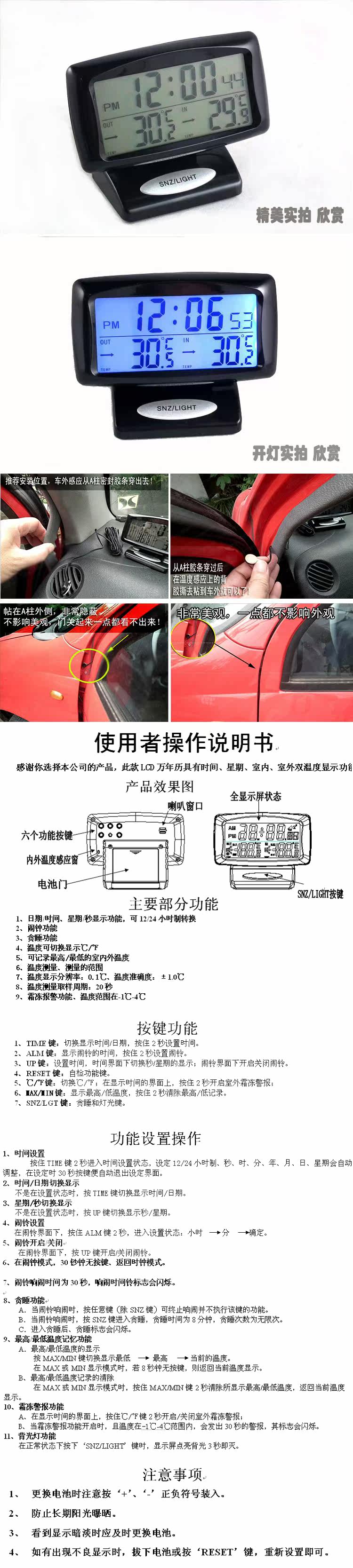 Универсальные часы, цифровой электронный светящийся термометр для автомобиля