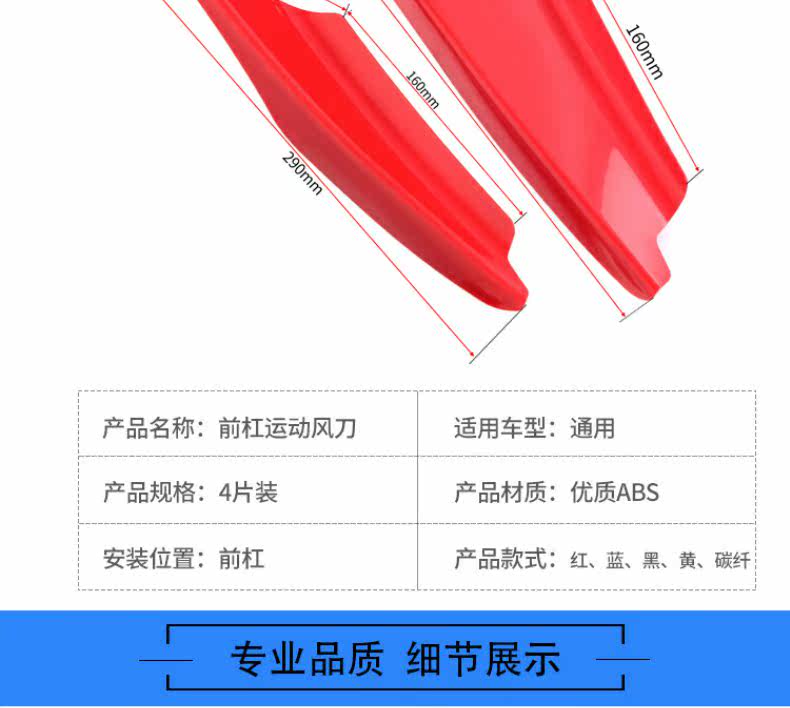 | Цвет: | Красный ветровый нож (4 штуки), Голубой ветровый нож (4 штуки), Желтый ветровый нож (4 штуки), Ярко -черный ветер меч (4 штуки), Углеродный волокнистый ветровый нож (4 таблетки) |