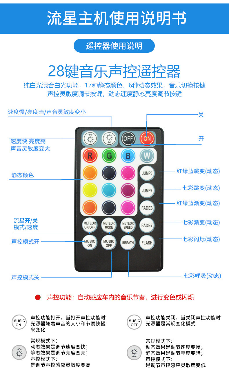 Звездное небо Модификация автомобиля сверху Управление через приложение для автомобиля Внешнее освещение Голосовое управление Гипсофила Модификация интерьера Оптоволокно Семь цветов