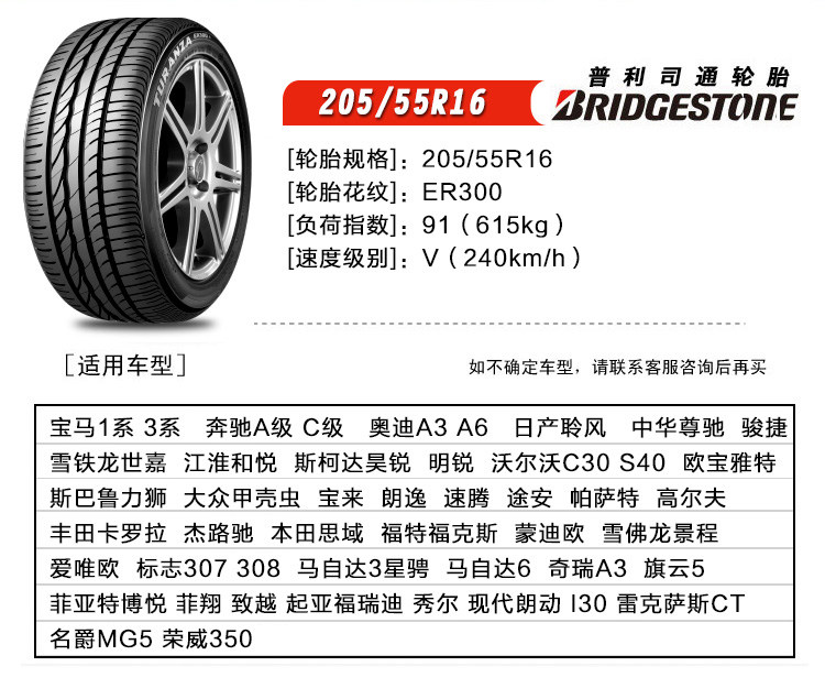 Bridgestone Tire/Car Tire 205/55R16 91V