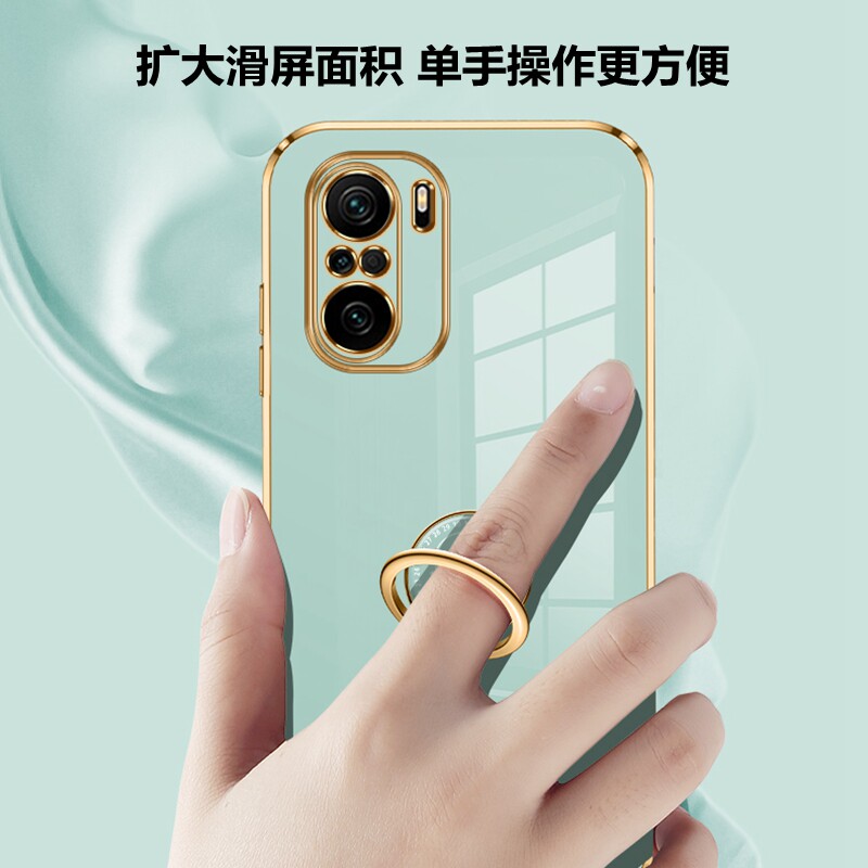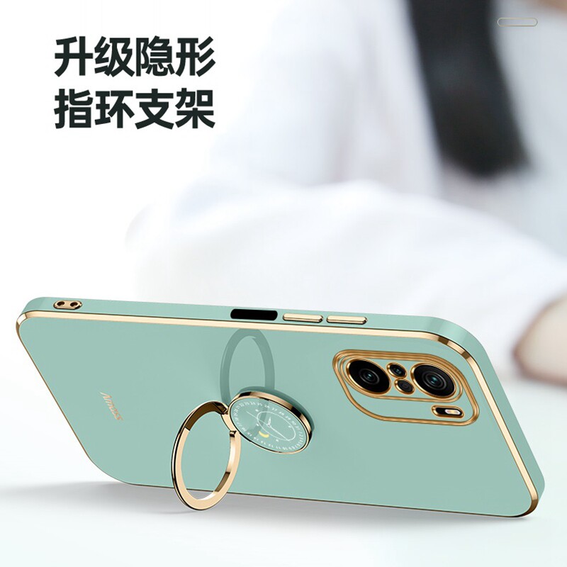 - Redmi Note10pro ★ Mint Green [Ring Delogen] ★ Light Luxury Elecloplating Gold Edge