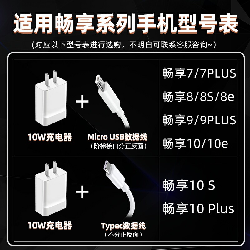 Применимо к Huawei Changxiang 9plus/10E Зарядное устройство 10 Вт быстрая зарядка 7plus/8e/8s Android Data Cable S Plug