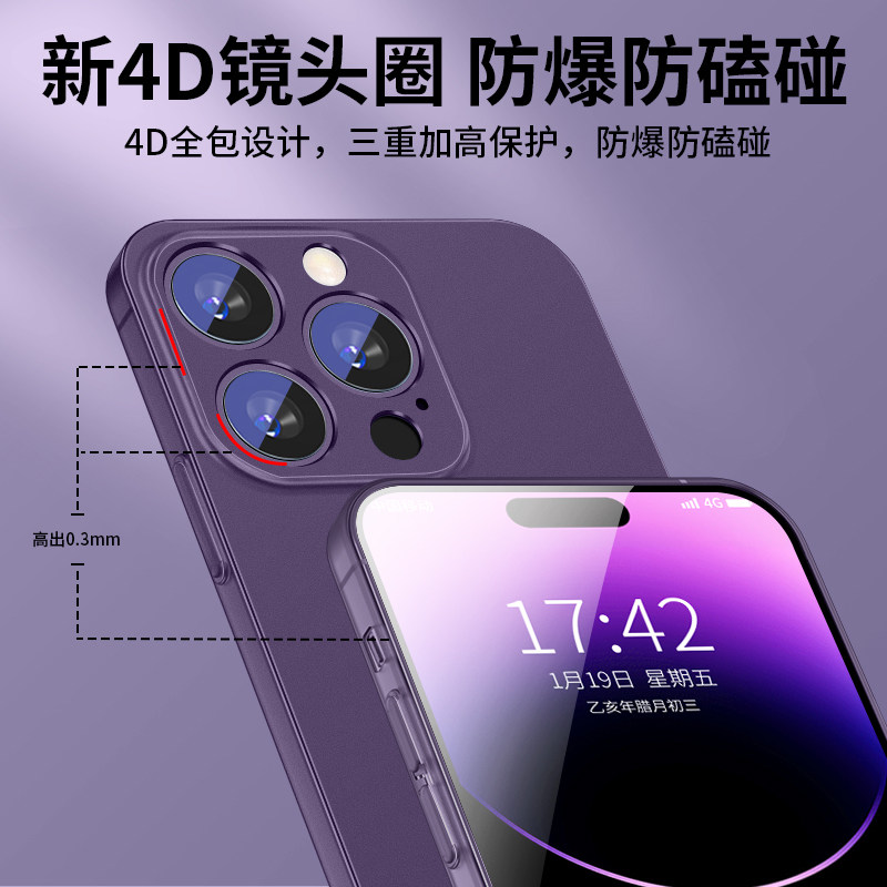 Apple, совместимый iPhone 13, чехол для телефона, матовый ультратонкий iPhone14 Pro, силиконовый сиреневый объектив подходит для мужчин и женщин, iphone, 14promax, защита при падении, изысканный стиль, 13promax