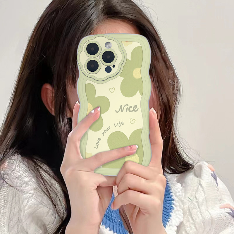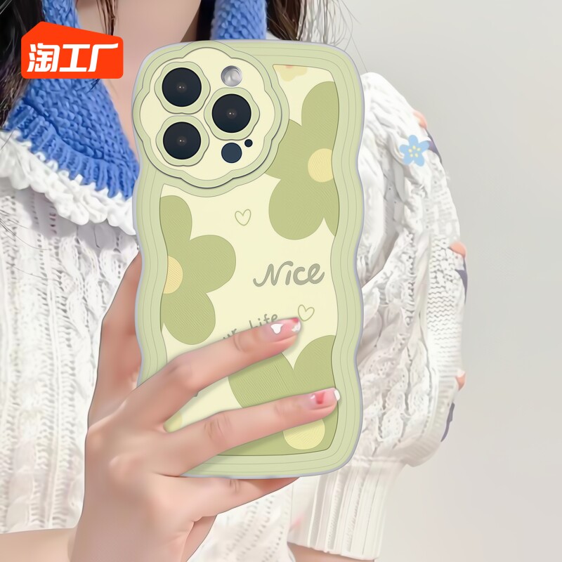 Apple, TikTok, совместимый чехол для телефона, защитный чехол, свежий волнистый комплект, 12, iphone, 13promax, 14promax, популярно в интернете, 7plus, защита при падении