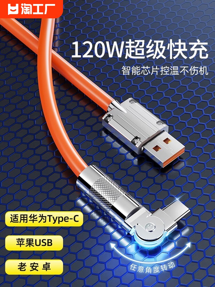 Huawei, honor, apple, oppo, vivo, xiaomi, крутящийся совместимый мобильный телефон, зарядный кабель, 180 градусов, 120W, андроид