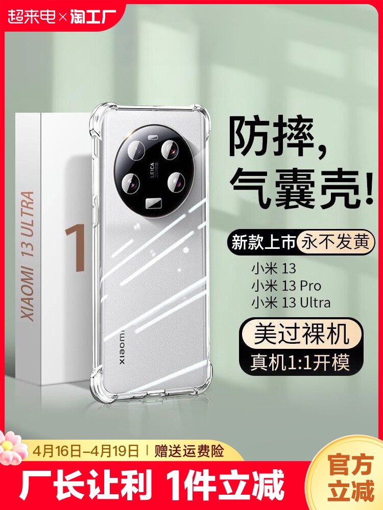 型月 Подходит для Xiaomi 13ultra Case Case Transparent xm13pro защитная крышка 12 новых моделей, All Inclusive Antry -Sloping Siloping Silect Shell Мужчины и женщины Xiaomi Dynamic Red Rice Technology