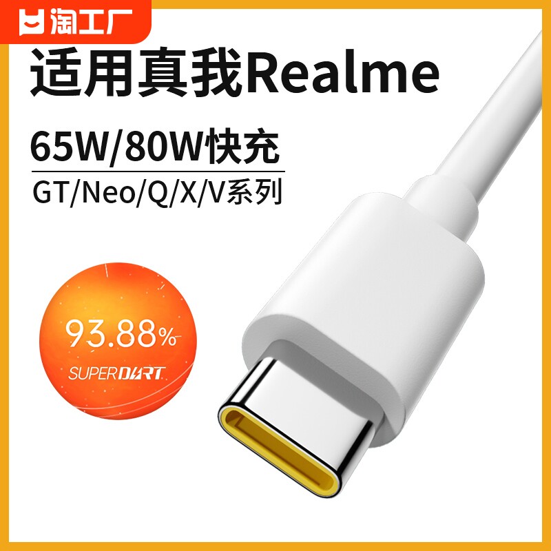 Применимо REALME TRUE CABLE CABLE GTNEO Зарядка провода Typec/neo2t/neo3/Q3S/Q5/2 Flash Зарядка 10S/GT2PRO/X50 Super Flash Line 65W80W