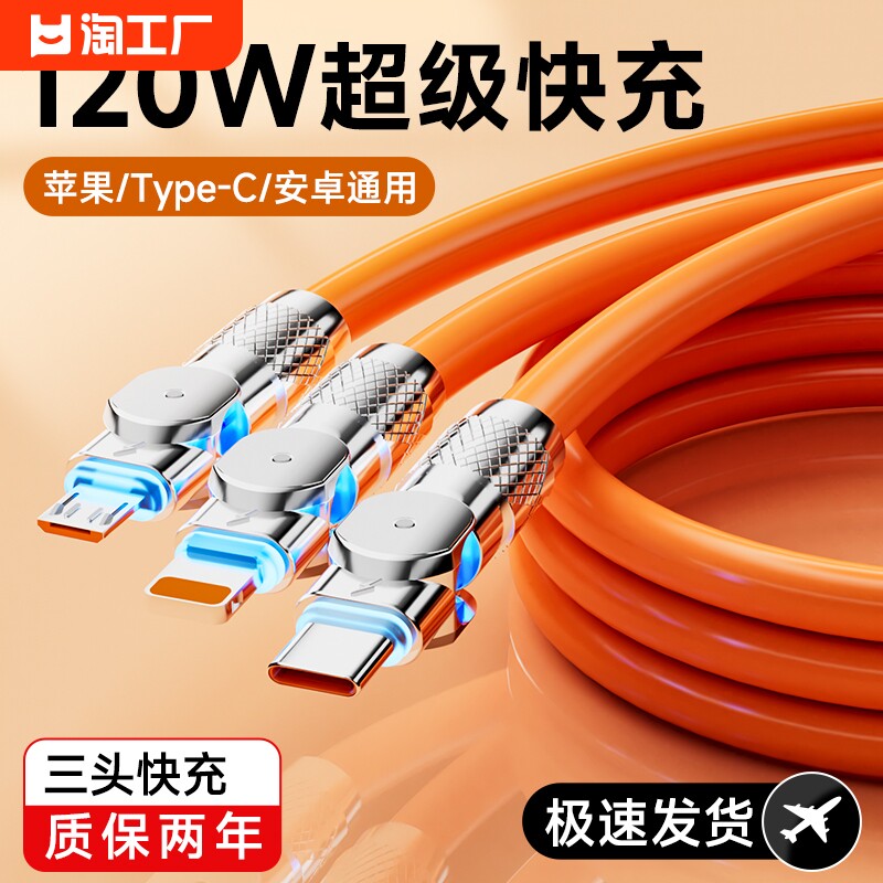 120 Вт машины и пассажирская линия, один перетаскивание, три кабеля быстрого зарядки, подходящие для Apple Huawei Typec Super Plug -In Multi -функциональная зарядка CAR