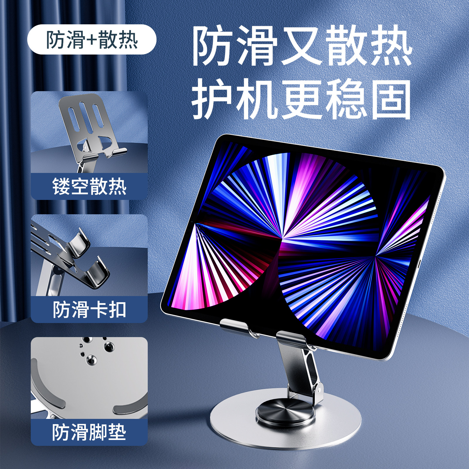 倍魔 Цельнометаллический складной держатель для телефона, настольная универсальная трубка, планшетная опорная рама для кровати, 360 градусов, фиксаторы в комплекте