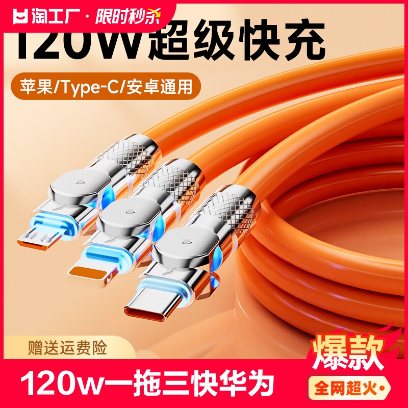 Apple, huawei, honor, совместимое универсальное зарядное устройство, мобильный телефон, зарядный кабель, 120W, «три в одном», андроид