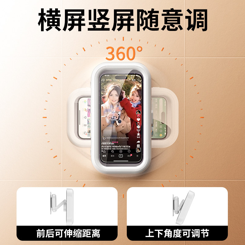 Вращение сенсорного экрана Ванная водонепроницаемая мобильная коробка для купания на стене без ленивого кронштейна.