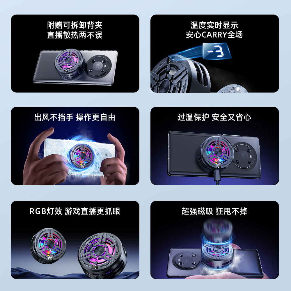 Радиатор мобильного телефона, магнитный полупроводник, артефакт охлаждения, подходит для Xiaomi Black Shark, Apple One Plus, бесшумное охлаждение, задний зажим, обледенение, прямая трансляция для iPad, киберспорт, посвященный 2025 году, подключаемая игра с воздушным охлаждением