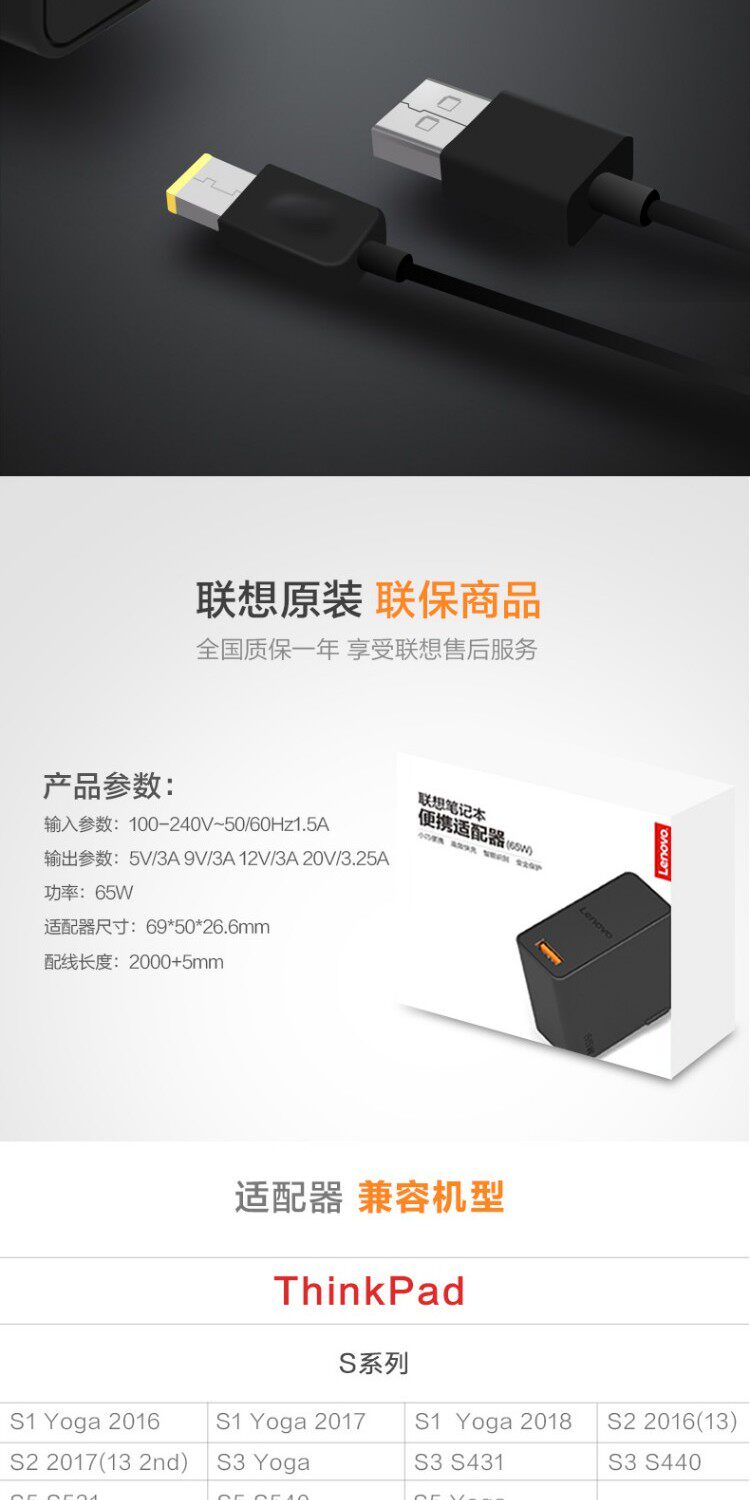Lenovo, оригинальные адаптеры питания, ноутбук, зарядное устройство, шнур питания, thinkpad, 65W, x1, x270
