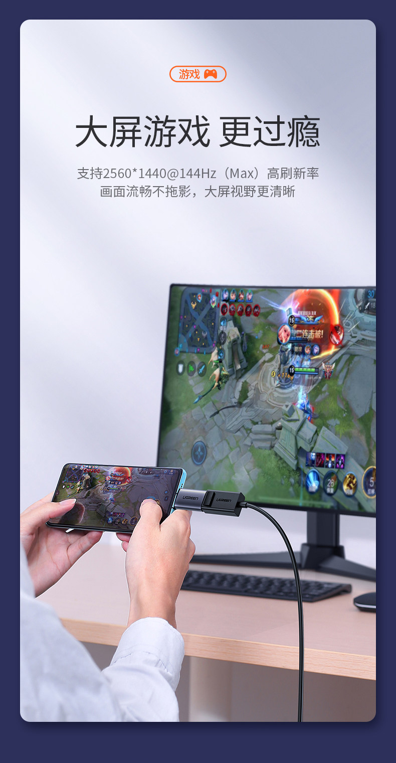 绿联 Typec to DP Connector USB-C Converter Displayport на тот же экран 4K HD 144 Гц дисплей MacBookPro Gm