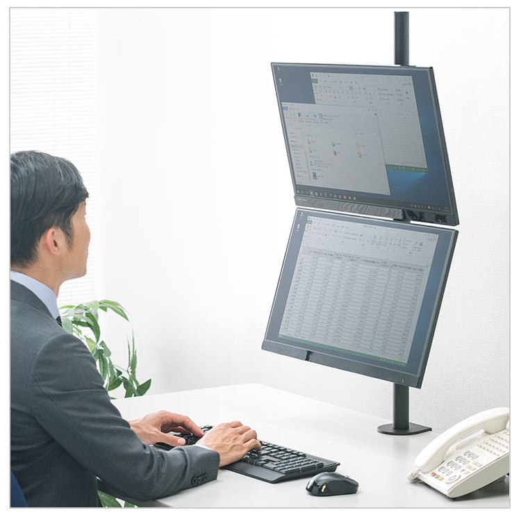 Япония Санва Двойной дисплей -кронштейн подъемного подъемного увеличения в постоянном рабочем столе универсального пунша без двойного экрана висящей рамы