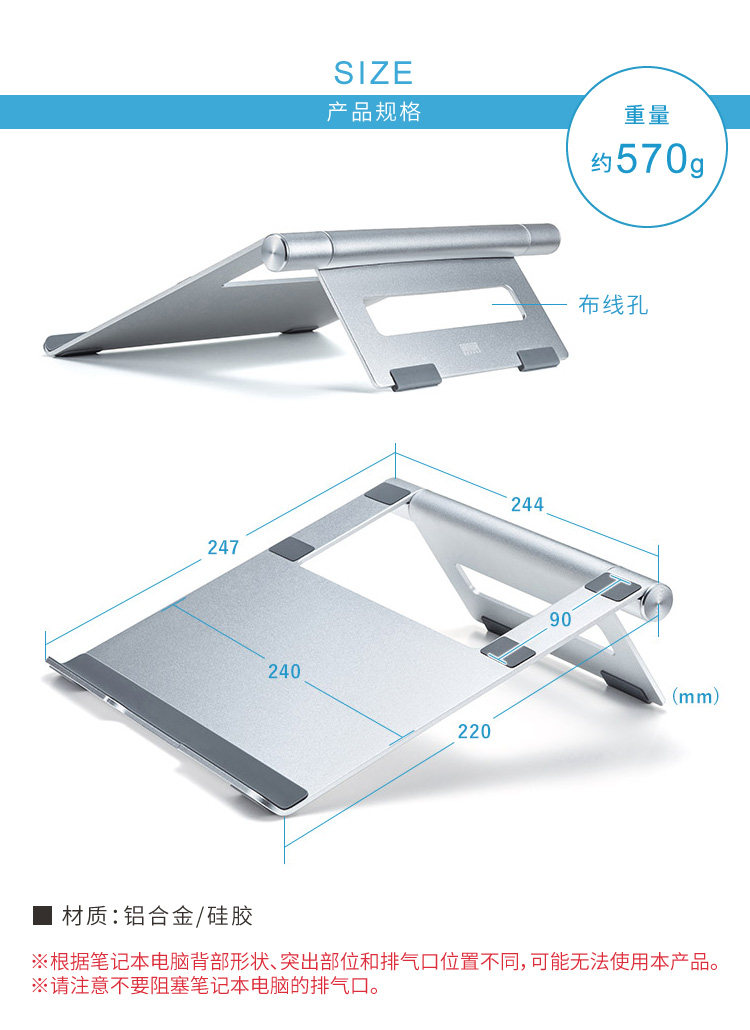 Япония SANWA подставка для ноутбука, кронштейн из алюминиевого сплава, складная подставка для компьютера, настольное охлаждение, эргономичная портативная приподнятая подставка, подъемная, подвесная, простая, бесступенчатая, для игрового ноутбука MAC, компьютера Pro
