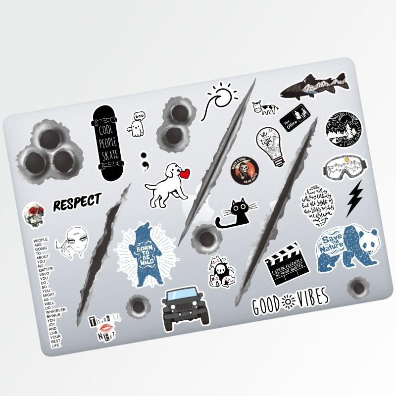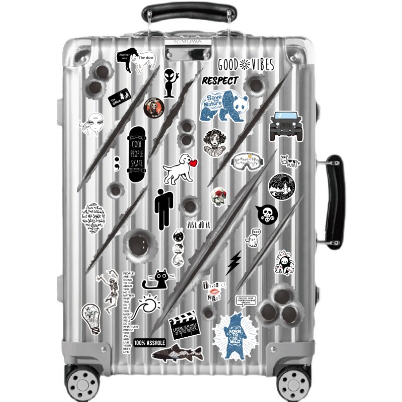 Черный трендовый светоотражательный чемодан, наклейка, скейтборд, гитара, планшетный водонепроницаемый ноутбук, мобильный телефон, наклейки