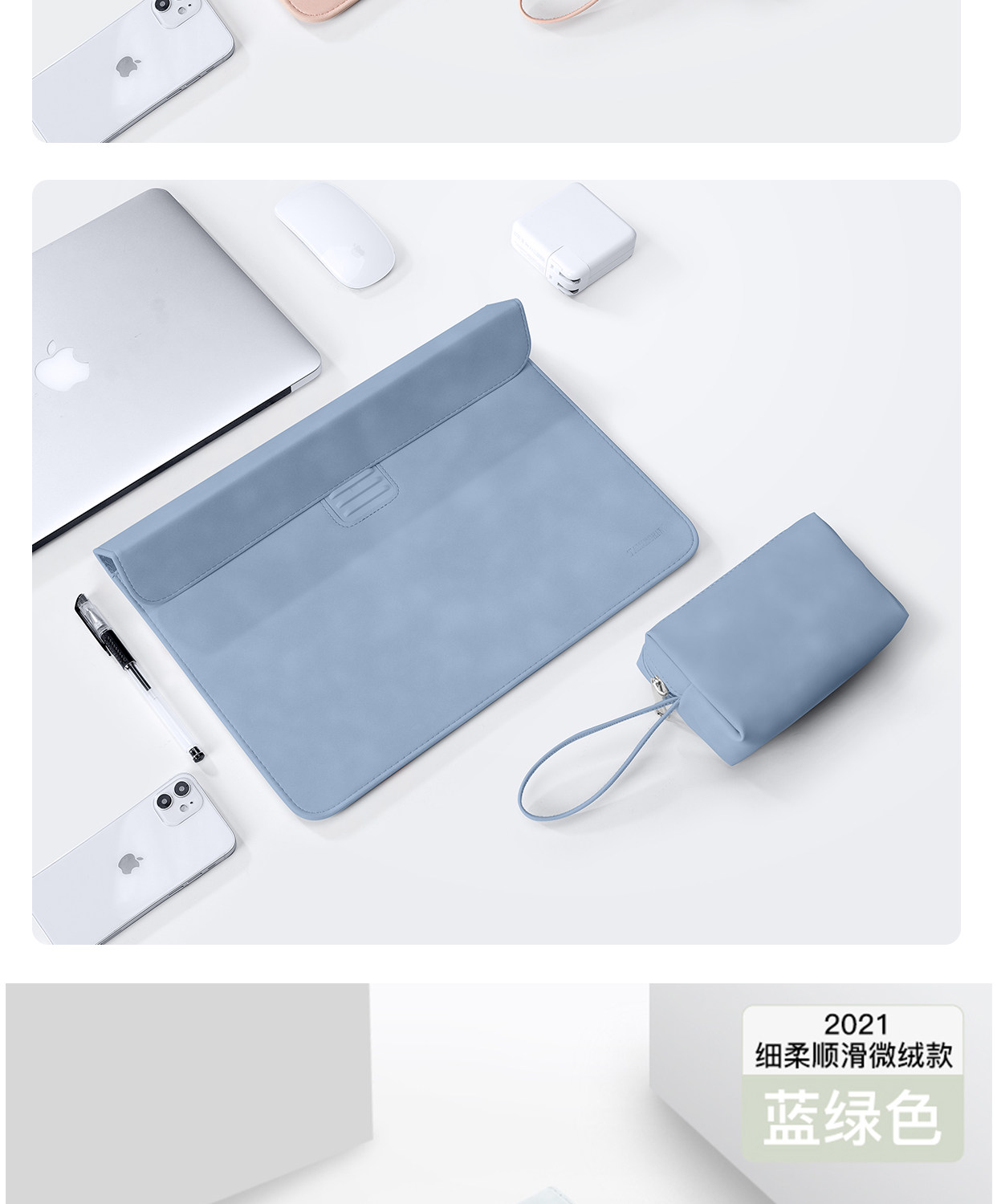 - [2022 Модели ★ Трехлочный регулируемый кронштейн] Кожа для кожи овцы Pu кожа-смог синий+мощный пакет