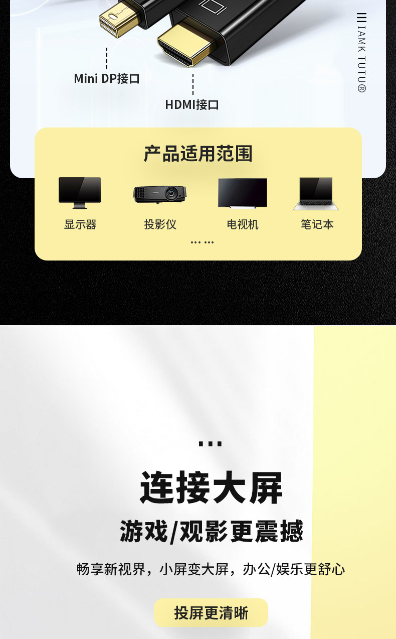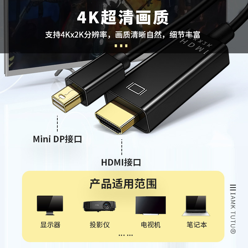 MinIDP в HDMI HD -Line Converter Thunderbolt2 Mini DP в HDIM -дисплей 4K -разъем
