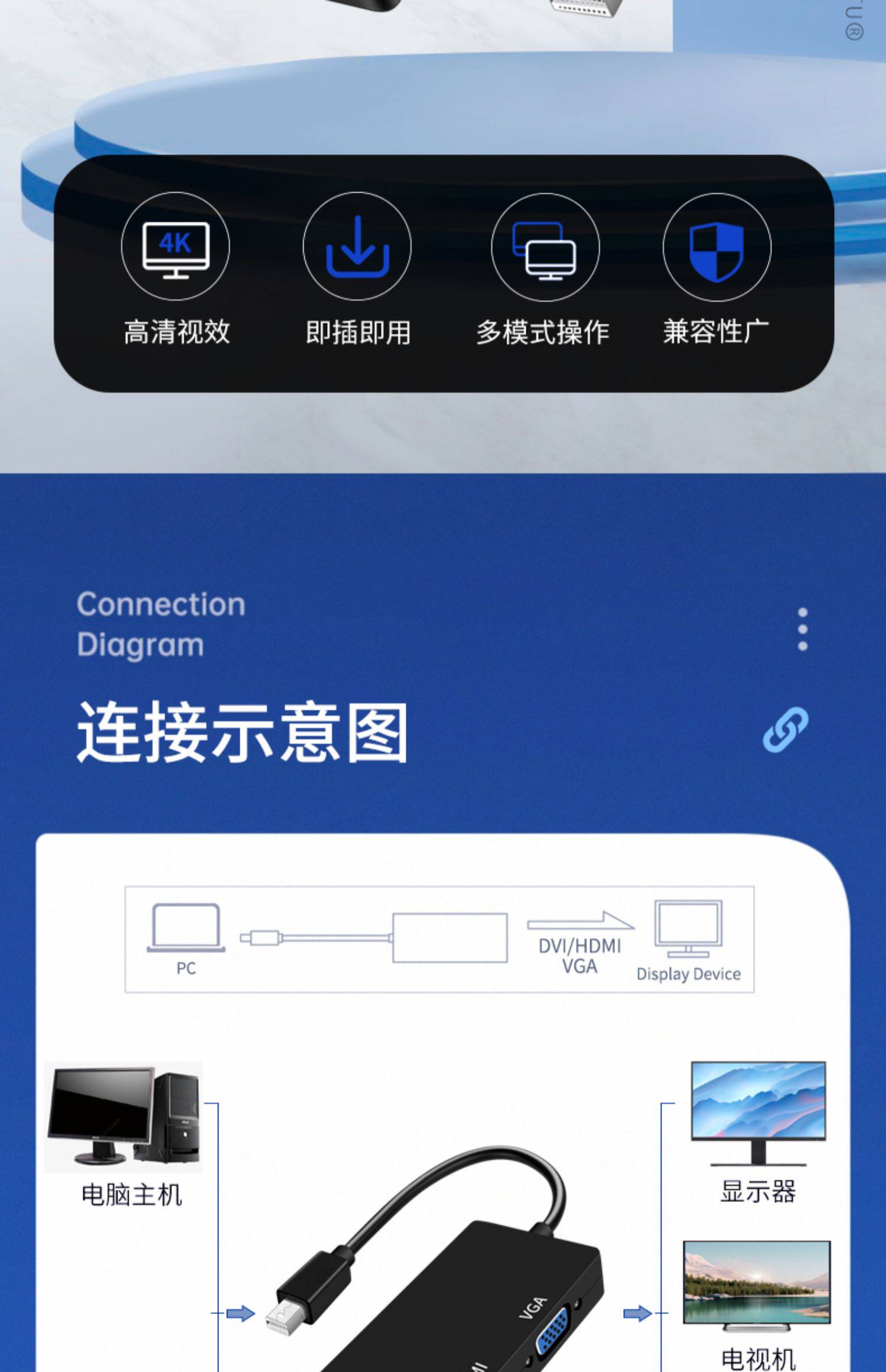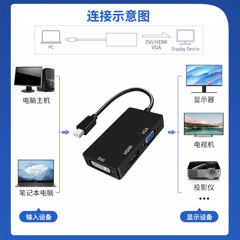 Применимый MinIDP в HDMI кабельный интерфейс VGA ROTOR DVI High -Definition Converter Fan Fan DP Mother Lightning 2 Apple Notebook. Компьютерная графическая карта Дисплей телевизионный проектор