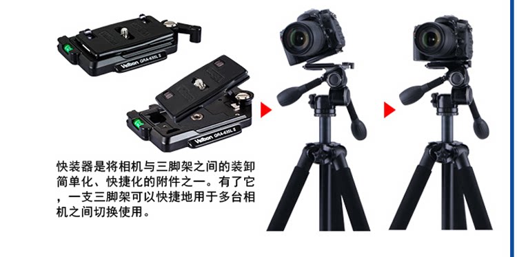 Быстрый загрузчик -это одно из вложений, которое упрощает загрузку и разгрузку между камерой и штативом.С ним можно быстро использовать штатив для переключения между несколькими камерами.