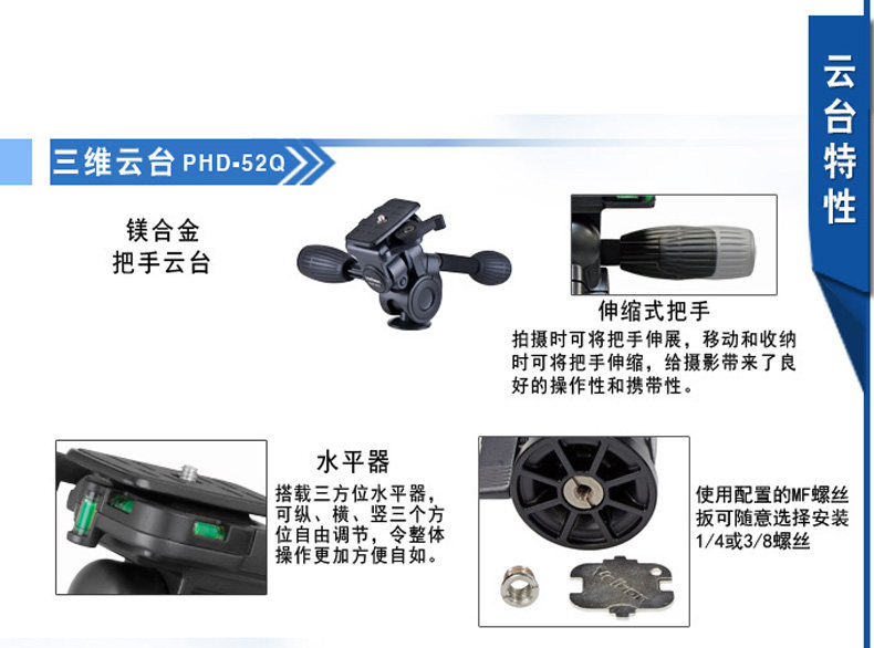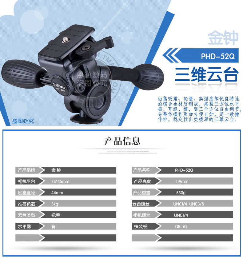 金钟 Velbon PhD-52Q Трехмерная каркасная ручка магния сплав Fengtai PhD-52Q