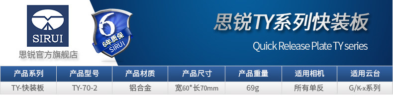 思锐 TY70-2 штатив-камера Глобальная плата быстро загрузки платы Анти-ротации Вертикальная стрельба не поклоняется стандарту универсала головы