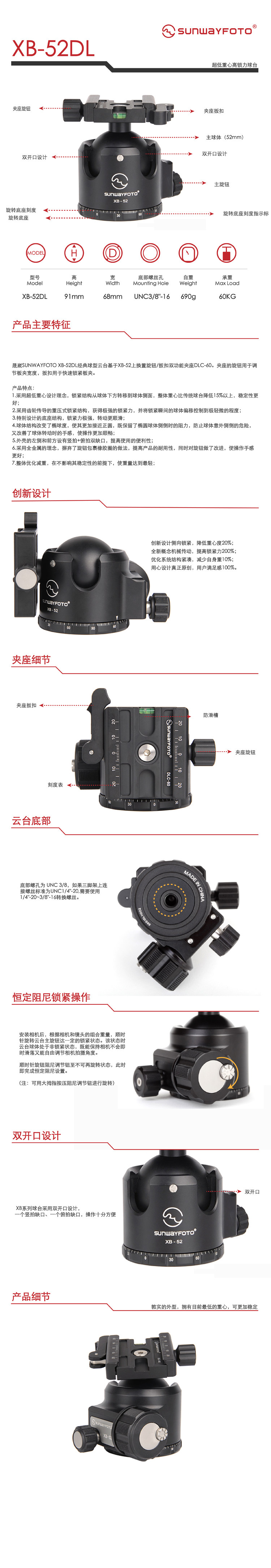 Подлинный sunwayfoto xb-52dl Низкий центр тяжести силовой ручки с высокой блокировкой зажима шарика Гимбин