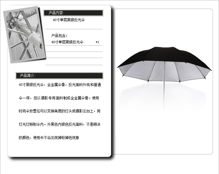 SITOO/喜图 33 -Придудка с отражающим зонтиком за пределами черного внутреннего серебряного одиночного серебристого сингл -слоя Shadow Room Light Match
