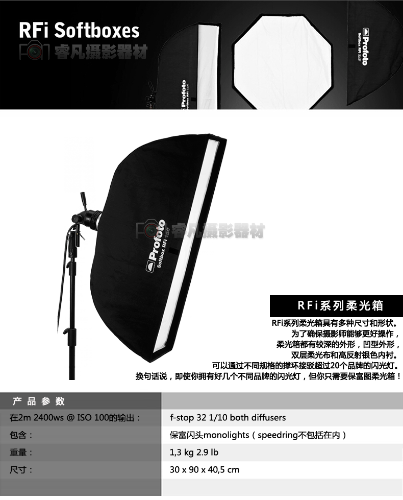 Profoto Baofu Tu Softbox RFI 1x3 '(30x90 см) -1x3 футов (30x90 см) мягкая световая коробка 254708