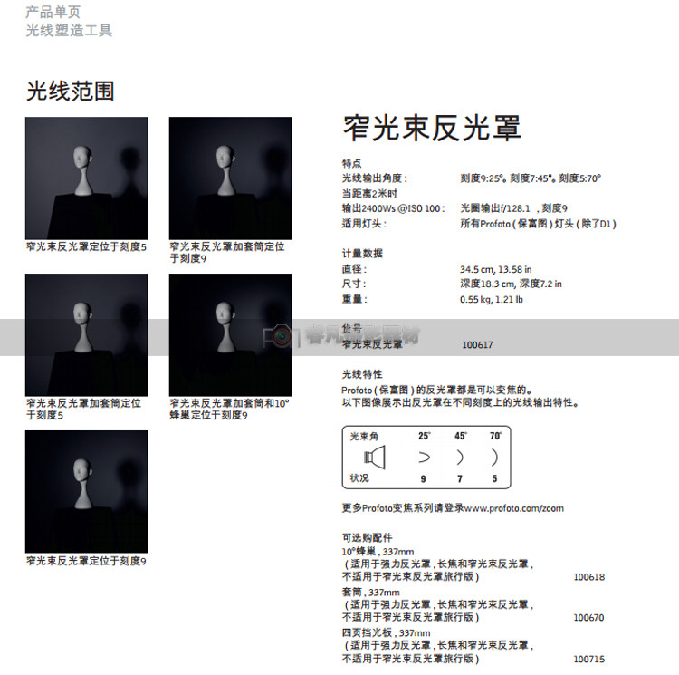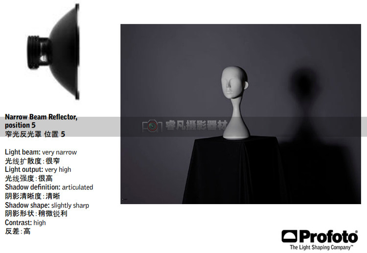 Среди всех абажуров Profoto световой выброс узкого капюшона отражателя луча является мощной, а средняя точка проекции света достигает высокой точки, которая ослаблена до четырех недель.Изменив угол световой головки для достижения точного управления, можно использовать протебе с расширенным рукавом и ящиком для сотовой связи.