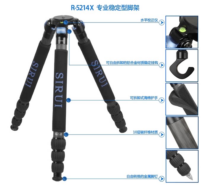 Штатив из углеродного волокна, профессиональная цифровая камера, портативная видеокамера, трубка, угловая рама, 5214x
