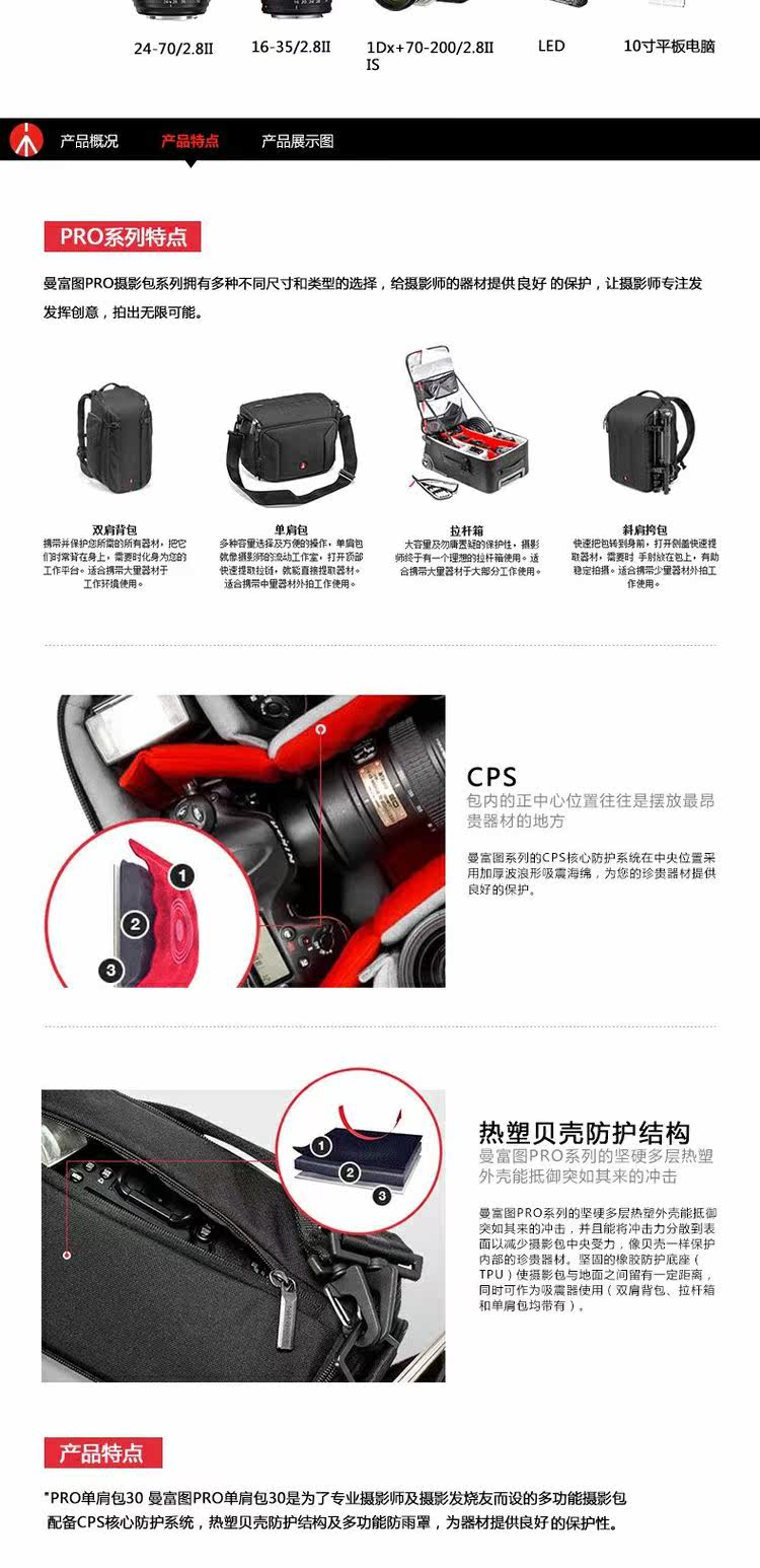 Manfrotto/曼富图 MB MP-SB-30BB Photography Photography Bag Pro Sag Sagn