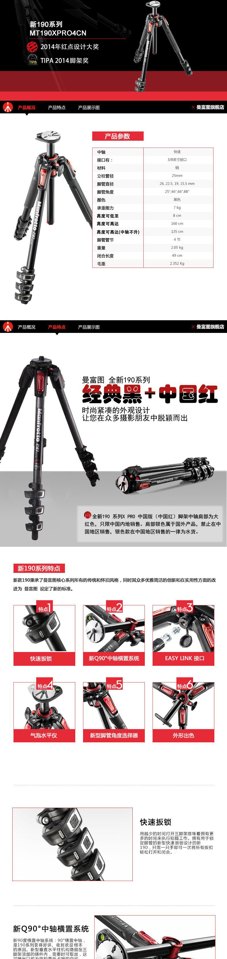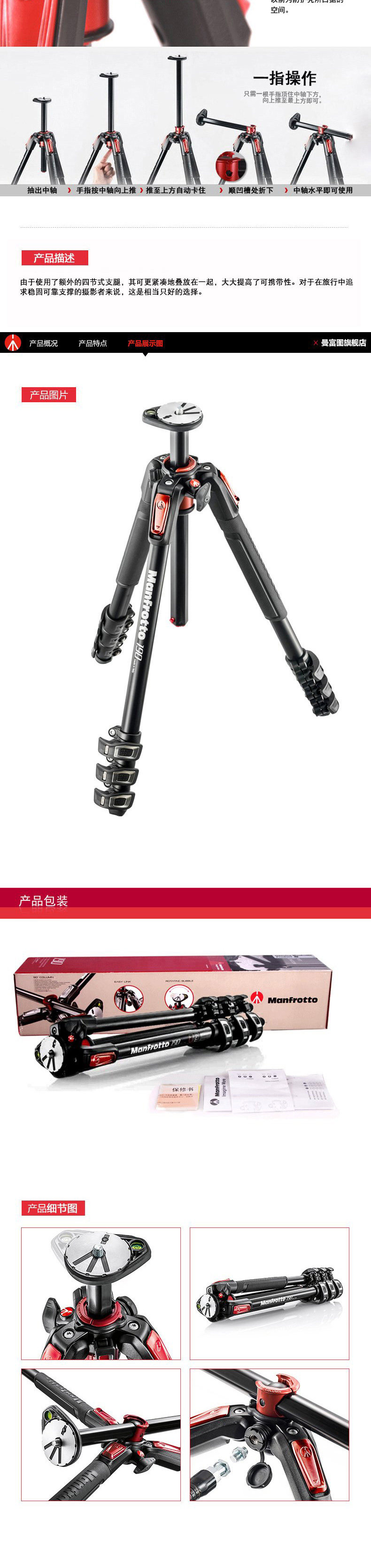 Manfu Mt190xpro4 Tripod New 190 Aluminum Alloy 4 Профессиональный средний ось быстро горизонтальный