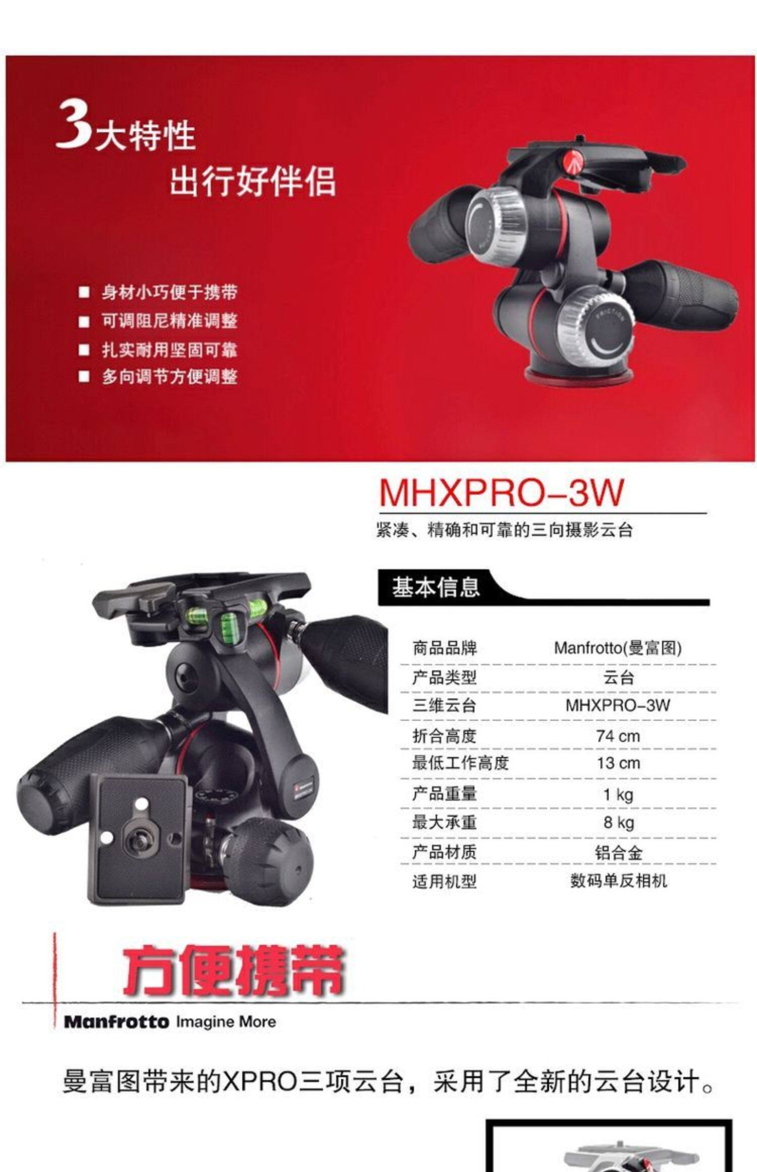 Manfu Manfrotto MHXPRO-3W Relief 3D Трехсторонняя фотография. Гимбальная нагрузка 8 кг