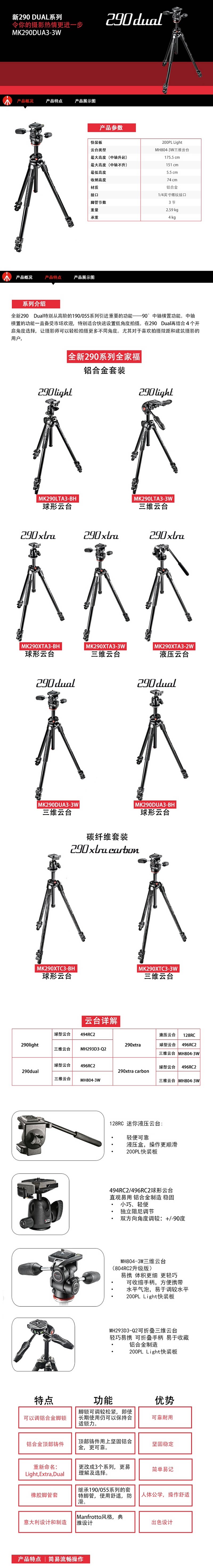 Набор штативов Manfrotto MK290DUA3-3W для зеркальной фотосъемки из алюминиевого сплава 3D с панорамированием/наклоном