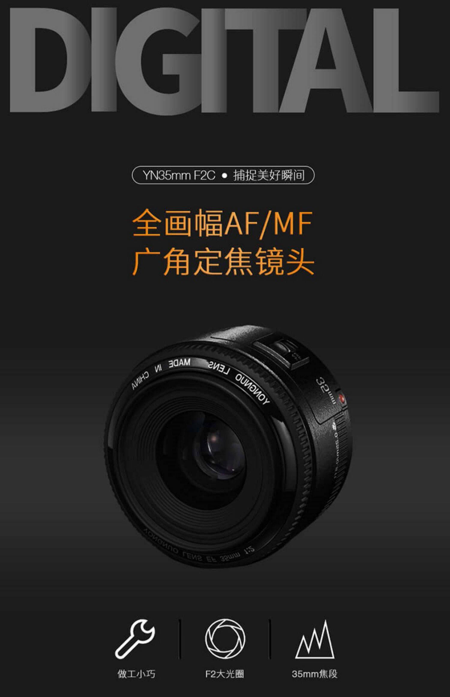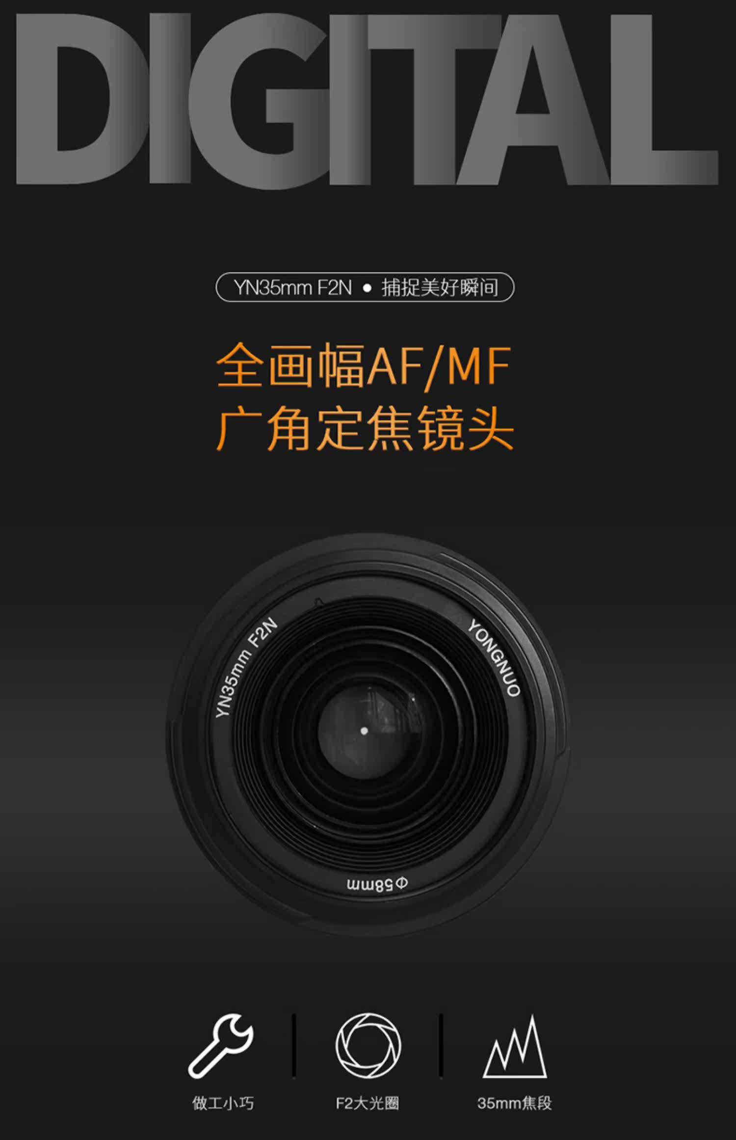 永诺 35mmf2.0 Фиксированная -Фокус большой апертурный портретный ландшафтный ландшафт гуманитарные гуманитарные гуманитарные.