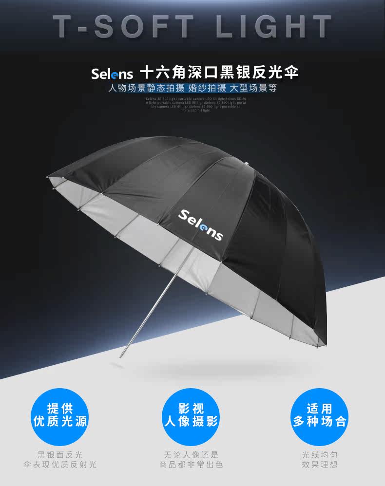 SELENS 130 см глубины молодых отражающих зонтиков с помощью зонтик мягкий светлый зонтик черный серебряный волокно отражение мягкое свет